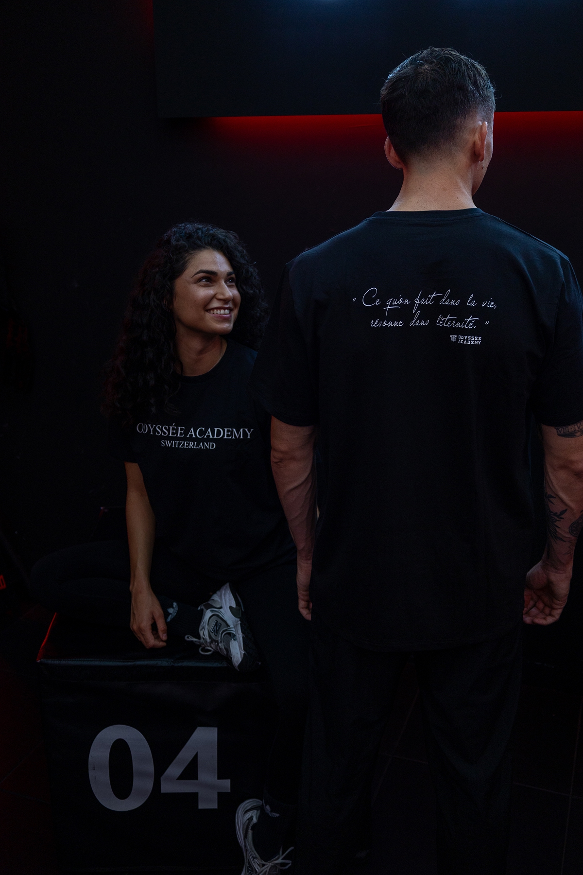 ✔️ Logo Odyssée Academy Switzerland imprimé sur la poitrine – symbole de fierté et d’appartenance